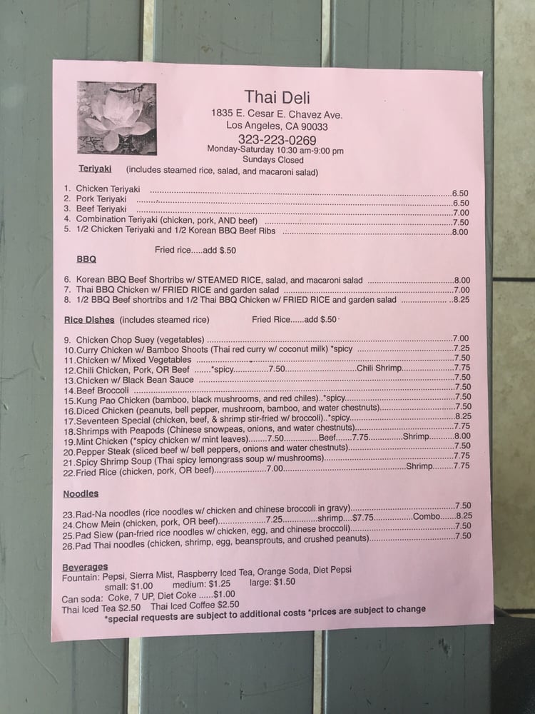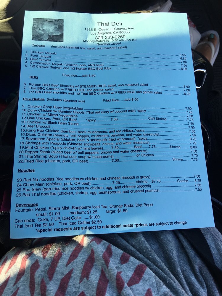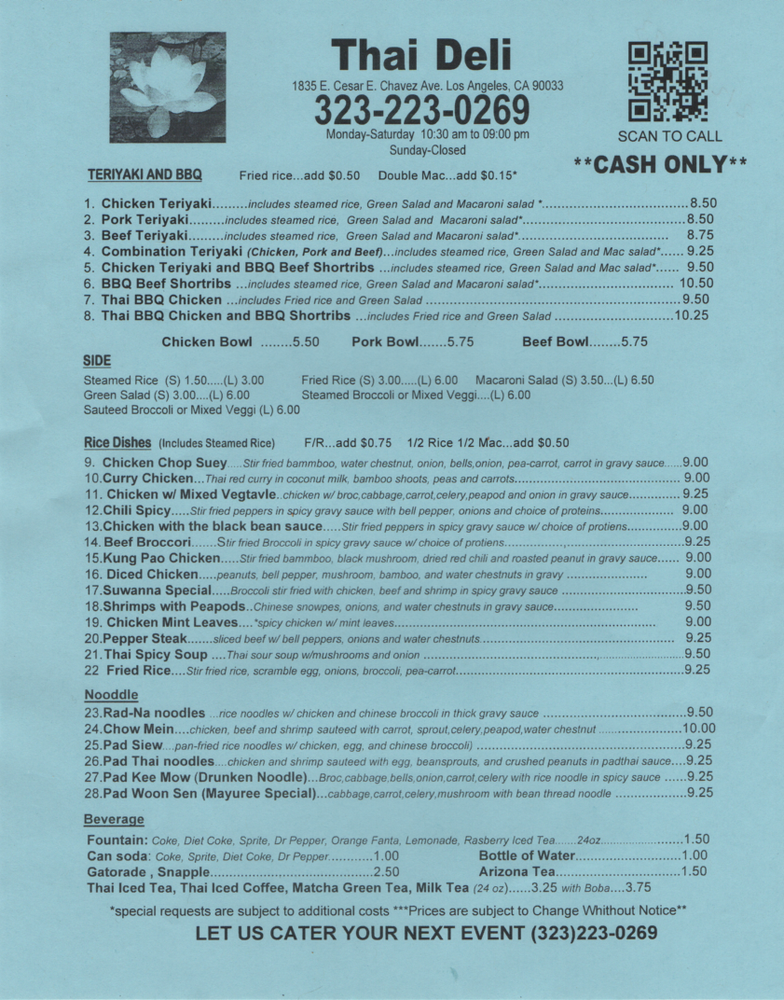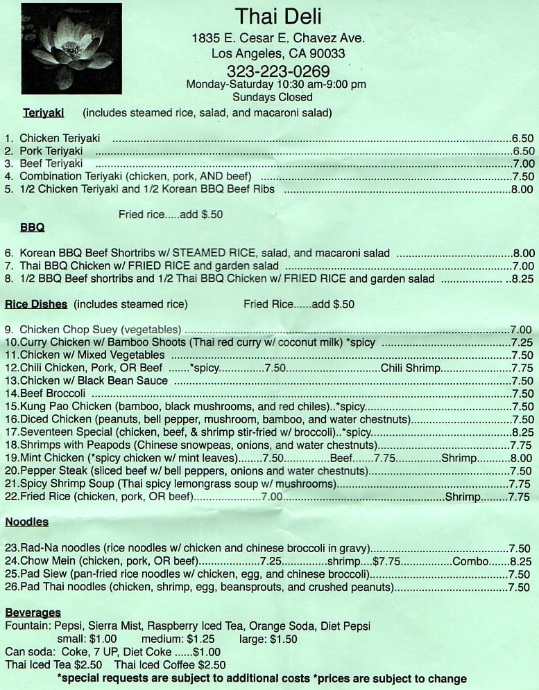 Thai Deli Menu (Update 2025)